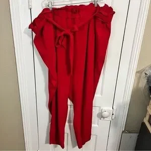 Lane Bryant Red Belted Pull On Ankle Pants Size 26 G