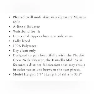 New Mestiza Daniella Pleated Twill Midi Skirt size 6