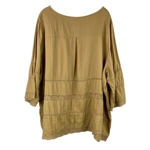Logo 100% Cotton Tiered Tunic Top Size 28W Brown Mustard Lightweight Boho Lace
