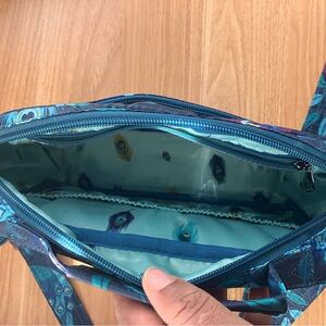 Chic crossbody with peacock design. Multi compartments and pockets. Ideal for daily use.