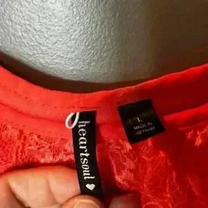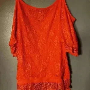 Salmon Colored Lace-Over Blouse Peekaboo Shoulders and Spaghetti Straps