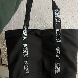 Chic black tote featuring prominent 'PINK' logo. Ideal for daily essentials.