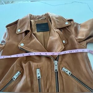 AllSaints Fern Dipdye Biker Sheep Leather Moto Jacket Cognac Brown Size US 4