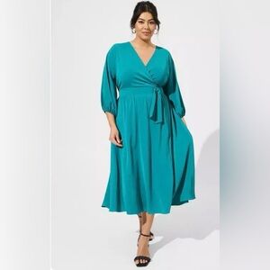 NWT Torrid Tea Length Studio Studio Crepe de Chine Surplice Midi Dress Size 1X Teal