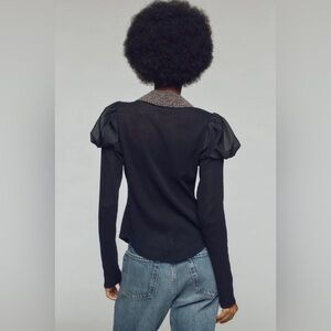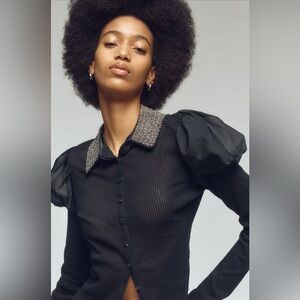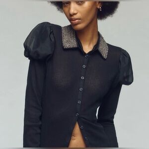 NWT Anthropologie Maeve Puff-Sleeve Buttondown Rhinestone Collar Shirt, Size XS