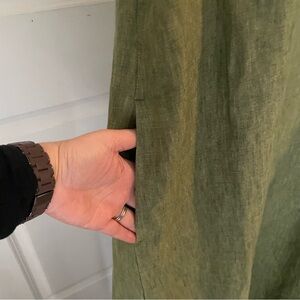 Eileen Fisher Organic Linen Delave Cami Green Sleeveless Oversized Maxi Dress L