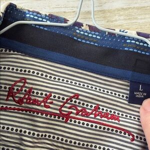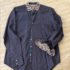 Robert Graham Dark Blue Shirt with Floral Collar