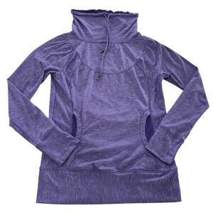 Keywords: Prana, Womens, Purple, Cowl Neck, Funnel Neck, Pullover, Top, Thumb Hole, Athletic, Activewear, Casual, Medium, Workout, Yoga