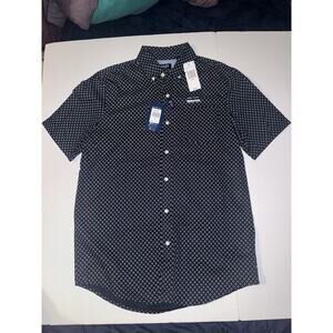 Chaps Mens M Navy Geometric Print Button Down Shirt NWT Easy Care