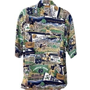 Brand new (without tags) Reyn Spooner Mens Size X-Large Notre Dame Theme Rayon Button Down Hawaiian Shirt. Measurements: