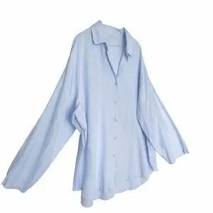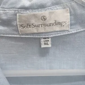 Soft Surroundings Linen Button Front Tunic Top Light Blue Women’s 1X Plus Size
