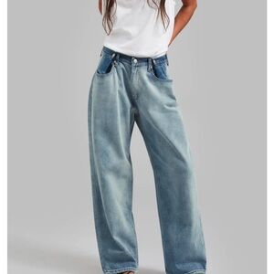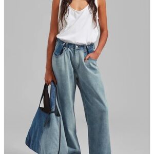 Stylish wide leg jeans. Light blue wash. Comfortable fit. Perfect for casual wear. Fit best if you’re 5’1- altered to fit my height