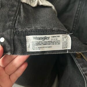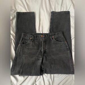 Classic Wrangler jeans in a sleek black. Straight fit for versatile style. Durable and comfortable. 31 x 32
