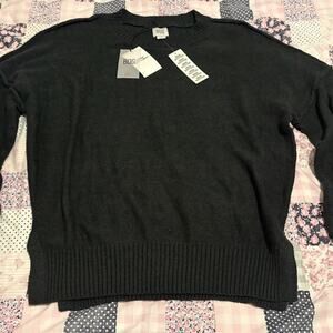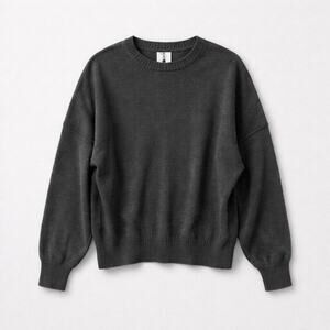 BDG Urban Outfitters crewneck sweater in a versatile charcoal grey. This cozy knit features a relaxed, oversized fit with dropped shoulders and ribbed trim at the neckline, cuffs, and hem. Side slits at the bottom hem provide a comfortable, modern silhouette. Perfect for layering or wearing on its own for a casual, effortless look.