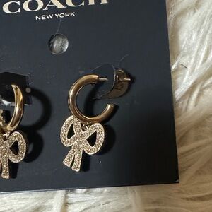 Chic Coach earrings with a sparkling bow design. Ideal for a stylish touch.