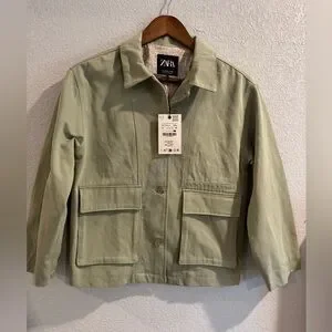 Chic mint green jacket by Zara. Perfect for layering. Adds style and comfort.