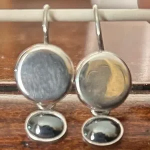 Stamped 925 Sterling silver & hematite earrings French hook backs 1 1/8” length