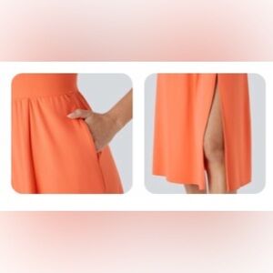 Chic and stylish midi dress. Features a sleeveless design. Perfect for any occasion. Dusty Orange