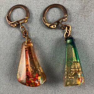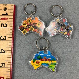 AND 5 key chains: 2 lucite Eiffel Tower, and 3 Australia continent. See our other listings for more lots of collectible pinbacks!