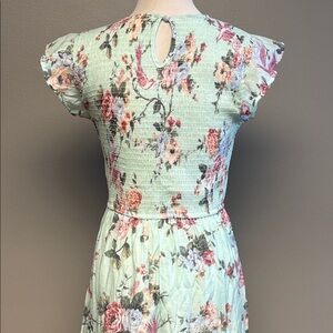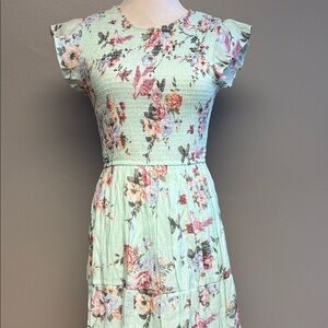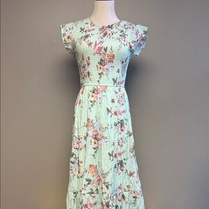 August Sky Floral Maxi Dress Mint Green Size Large Romantic Tiered