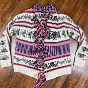 American Eagle Colorful Vibrant Fringe Cardigan Graphic size Medium Western Rare