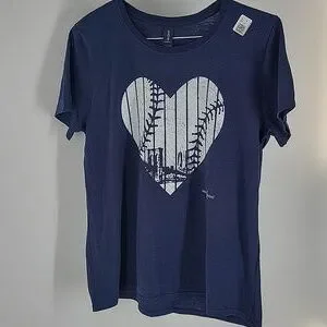 Navy t-shirt with a heart-shaped baseball graphic and NYC Skyline. Perfect for sports fans. NWT AND IN EXCELLENT CONDITION!