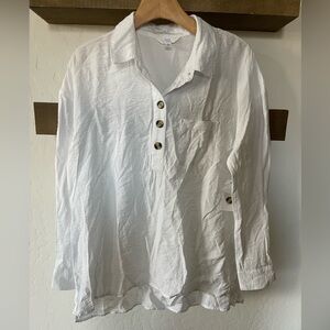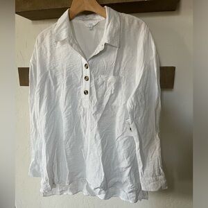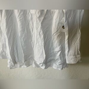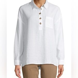 Time and Tru|White Long Tunic Button Down Blouse, Beachy Vibes•••Size Small,NWT