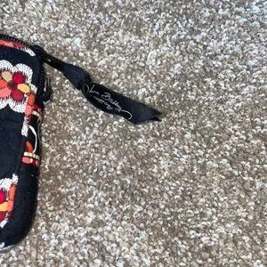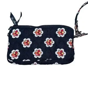 Vera Bradley wallet wristlet black floral print quilted rectangular 2 pockets