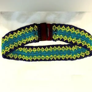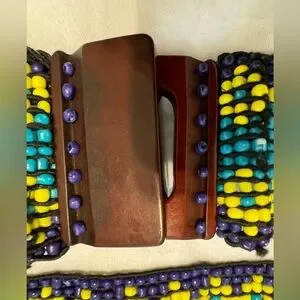 Chico's Wide Belt Multicolored Beadwork Turquoise and Yellow