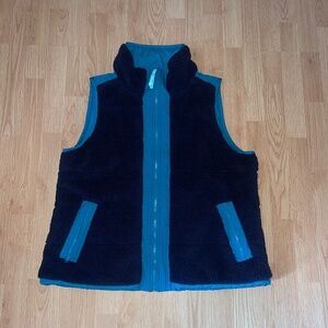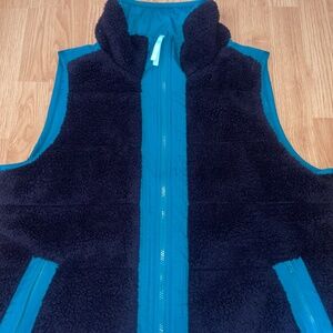T By Talbots Teal and Navy Blue Reversible Sherpa Puffer Vest Size XL