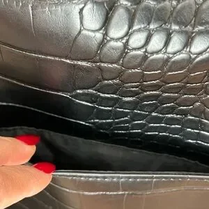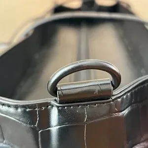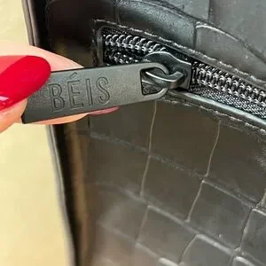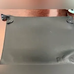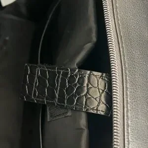 This tote bag is huge! Very spacious and well taken care of. I purchased it two years ago for work and didn’t use it much. It has pockets on both sides, a strap and an inside pouch that can be removed. I absolutely love this bag but no longer need. I got so many compliments on it!
