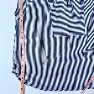 J.Crew Striped Cotton Popover Top Blue White MP Petite