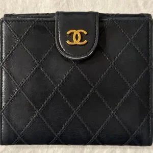 Authentic Pre-owned CHANEL Black Quilted Card Wallet with Gold Logo Hardware
