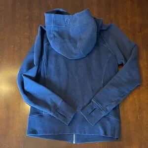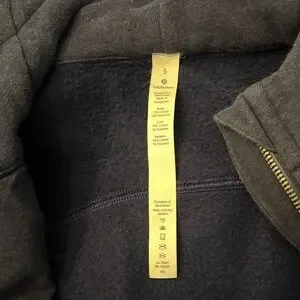 Lululemon size 6 navy blue zip up Sweater with thumb holes. Has pockets and hood. 97% cotton.