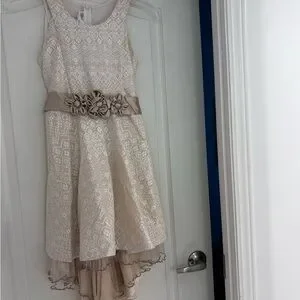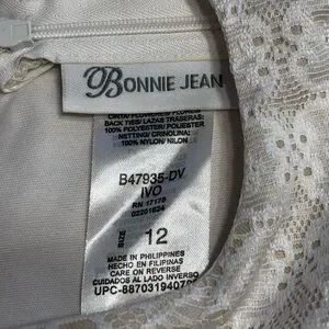 This dress is a Bonnie Jean cream no sleeveless floral lace high-low special occasion dress, often designed for flower girls, pageants, or formal parties. Similar styles are available from several children's brands, including Bonnie Jean,