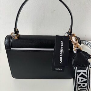 Chic black crossbody bag by Karl Lagerfeld. Features gold accents and a stylish design. Perfect for any outfit. Brand new with tags.