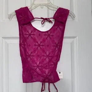 Anthropologie Sequin Lace Backless PInk Crop Top Size: XS