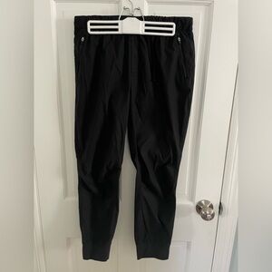 Comfortable tailored ladies jogger pants by Eddie Bauer. Zippered pockets. Internal drawstring. Easy care. 26” inseam. Non-smoking home.