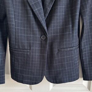 Elevate your style with the Womens Navy Blazer. Perfect for formal occasions, this blazer features a classic checkered pattern in a sophisticated navy color. Pair it with your favorite trousers for a polished look.