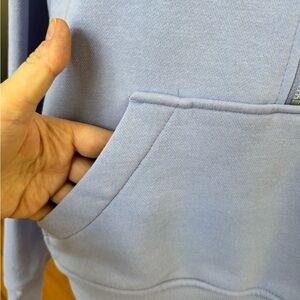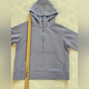 This cozy Danskin half-zip hoodie is the perfect lavender/light purple shade. Features a relaxed, slightly oversized fit with stylish mixed ribbing on the shoulders and cuffs. Perfect for layering after a workout or for a comfortable travel day outfit!