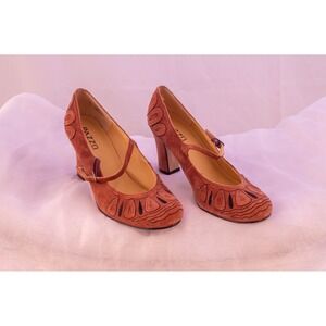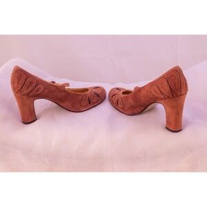 Vintage Rust Suede Mary Jane Block Heel Brown