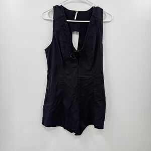 Pre owned Free People Black Sleeveless Romper Tie Front Cutout Back Casual Womens Size 2