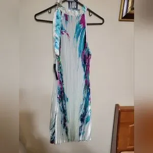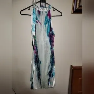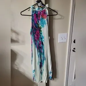 Elegant sleeveless dress featuring a vibrant floral design. Perfect for any occasion.
