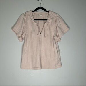 Madewell Pointelle Tie Neck Tunic Top Pink Size S