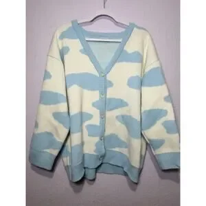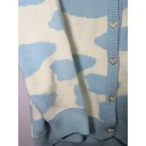 KokoKuma Blue Cow Print Cardigan L Coquette Soft Girl Y2K Kawaii Cottagecore