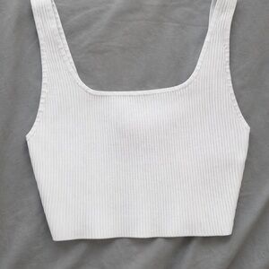 Babaton White Ribbed Crop Top