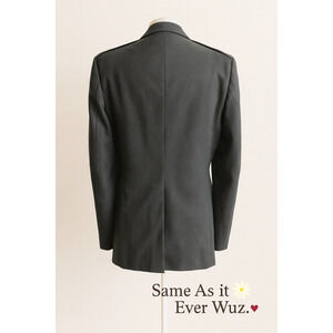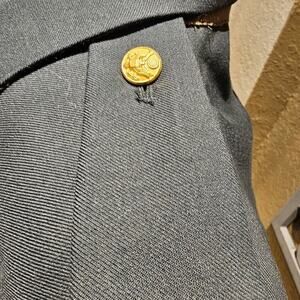 Authentic vintage U.S. Army Dress Green Uniform Coat — official issue, complete with gold crest buttons and classic structured tailoring. A collectible piece of American military history, perfect for display, reenactment, or as a statement fashion piece.