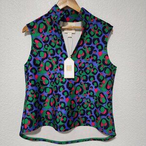 Emily Mccarthy Cheetah Print Vibrant Multicolor Top Large Coastal Preppy Golf