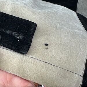 Has a few stains and is missing one button - see photos. No holes or seams coming unsewn.