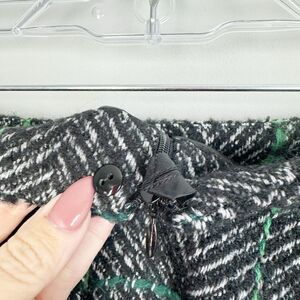 Stunning windowpane check Herringbone pencil skirt by Akris Punto. Color is called Black Slate - black and white herringbone print with green accents in the windowpane design. Zipper and button closure. Wool blend. Lined. Brand NWT. Women’s US size 10.